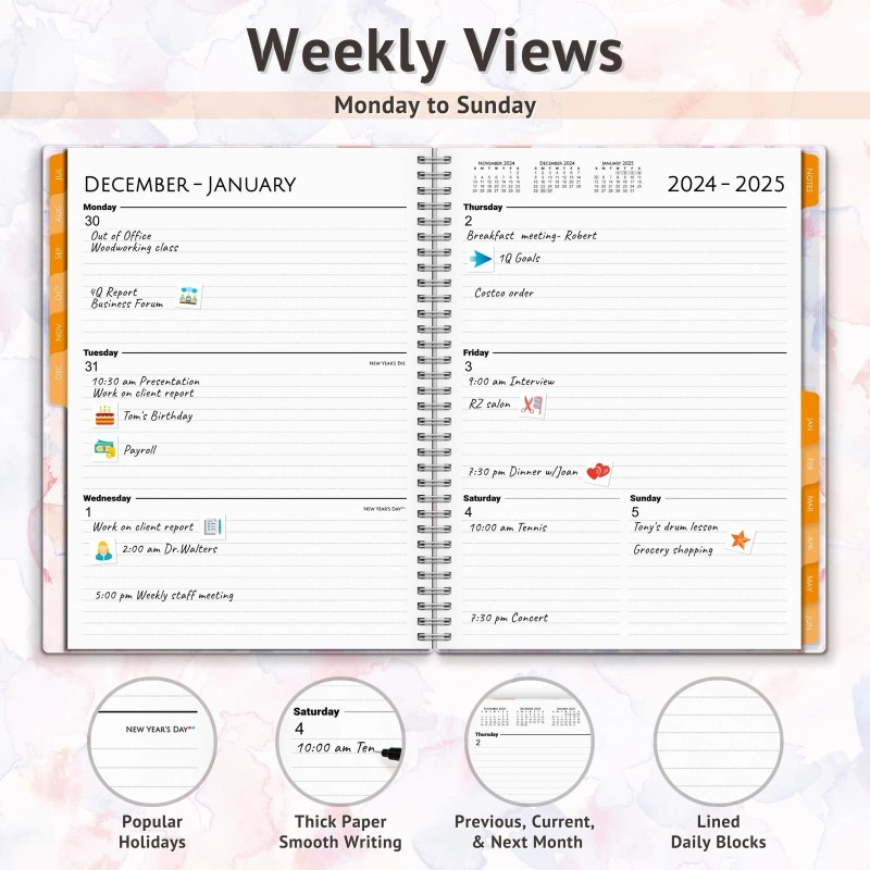- Academic Year 2024 2025 Planner Book, 8.5x11", Use July 2024 to June 2025. Bright watercolor design monthly planner, Weekly planner, Yearly planner 24 25. Extras include laminated bookmark, Stickers.
