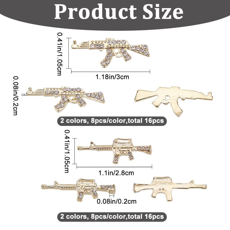 - Gun Shaped Design: 3d nail art rhinestones are designed with gun crystal rhinestones inset on the body, elegant and exquisite.
