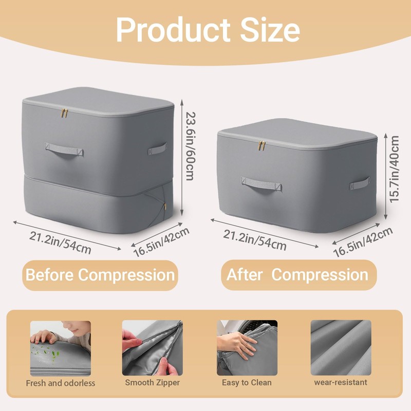 - DIMENSIONS: Ultra space saving self compression organizer, 21.3 x 23.6 x 16.5 inches, perfect for storing bulky items and seasonal clothing