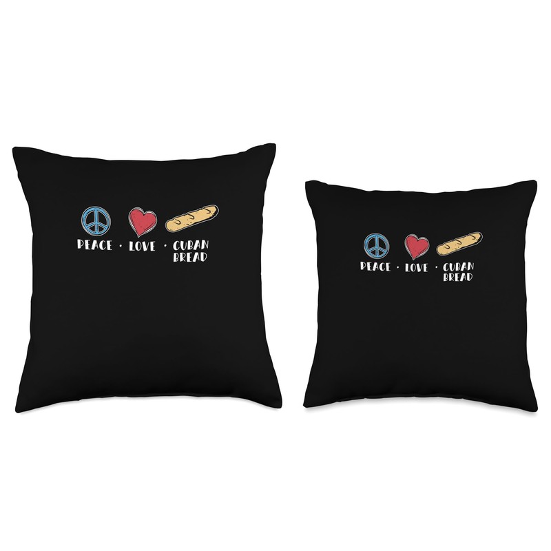 Crave For Cuban Bread Hub Peace Love Awesome Bread Cuban Pride A Pan Cubano Fan Throw Pillow, 18x18, Multicolor