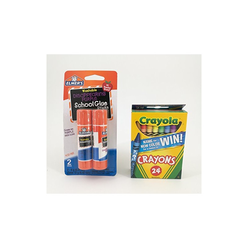 - One Crayola crayons 24-count and one Elmer's Glue Stick 0.21-Oz (2-pack)