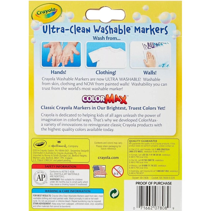 • Kids love to get creative with color, but parents want to keep the color where it belongs and easily remove it where it doesn't! The world's most washable non-toxic markers now come in an improved Ultra-Clean formula that washes easily from skin, clothing, and common household surfaces even painted walls. Markers feature a wedge shape for unique lines and easy shading.