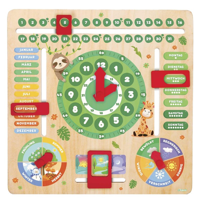 CRAZE My Learning Clock Animals - Wooden Educational Clock for Children Calendar Clock for Learning for Children Learning Board Clock Seasons Wall Clock