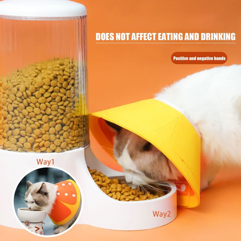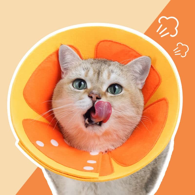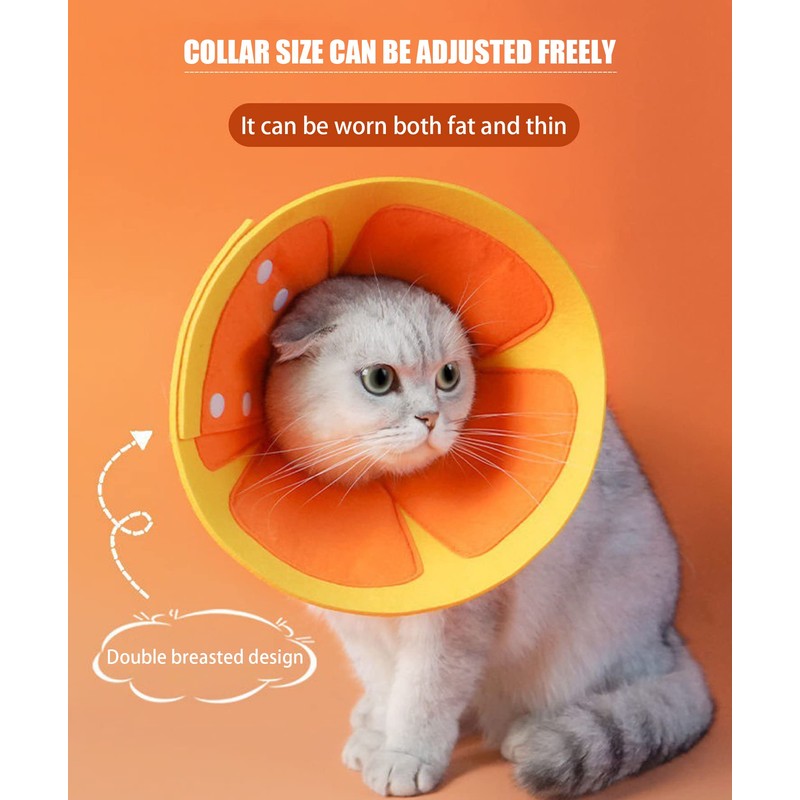 - Lighter Weight Our Elizabeth cat collars are made of felt which is really lightweight. This cat cone has only felt and buckles, without additional parts to increase the strain on the cat head.