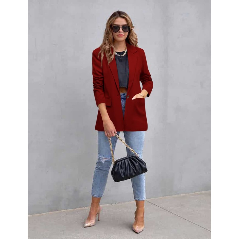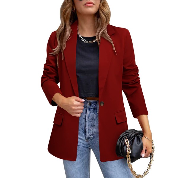 CRAZY GRID Womens Casual Blazer Long Sleeve Business Suit Jacket Open Front Button Work Office Blazer Jacket Fashion Dressy Ladies Blazer Purplish Red Size X-Large