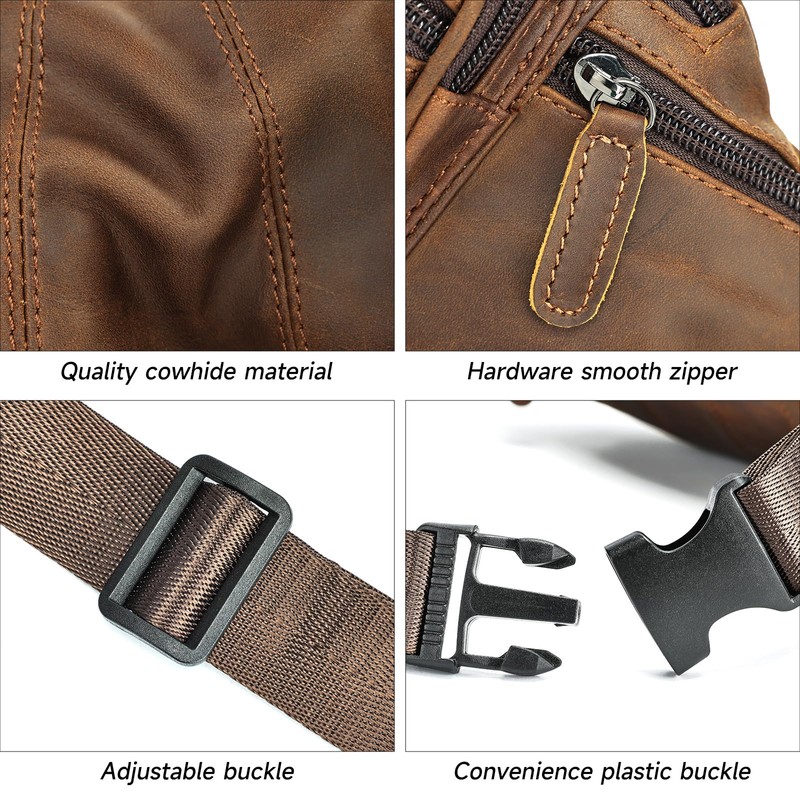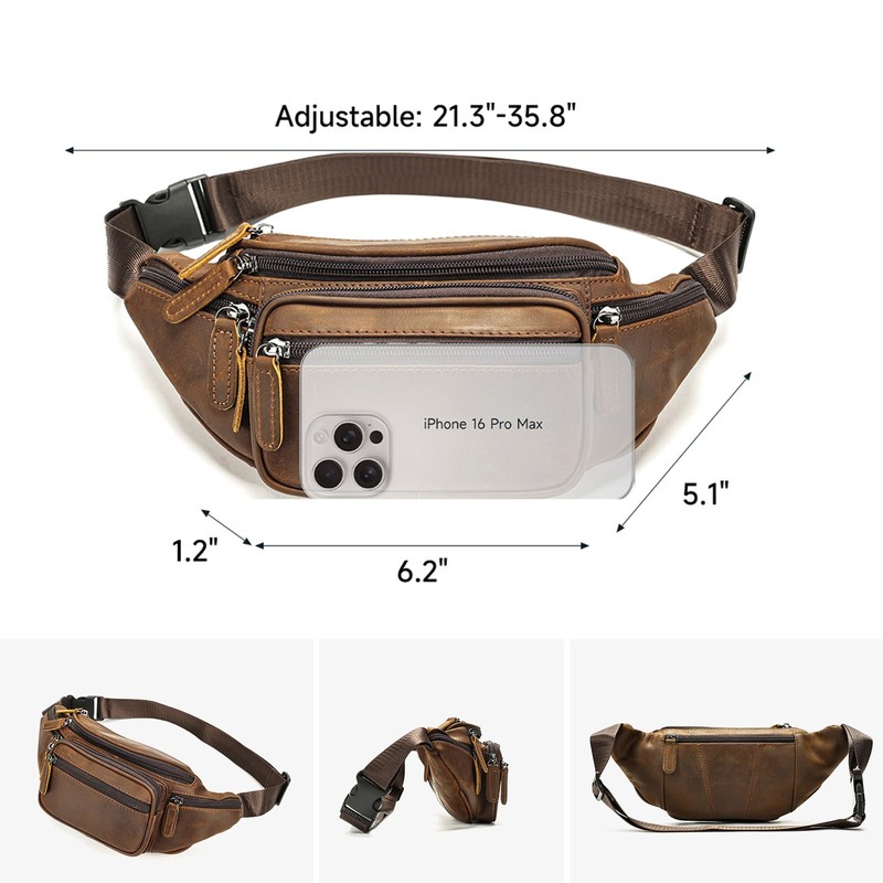 - Material: The waist pack is made of high-quality cowhide genuine leather which is lightweight,durable and soft.