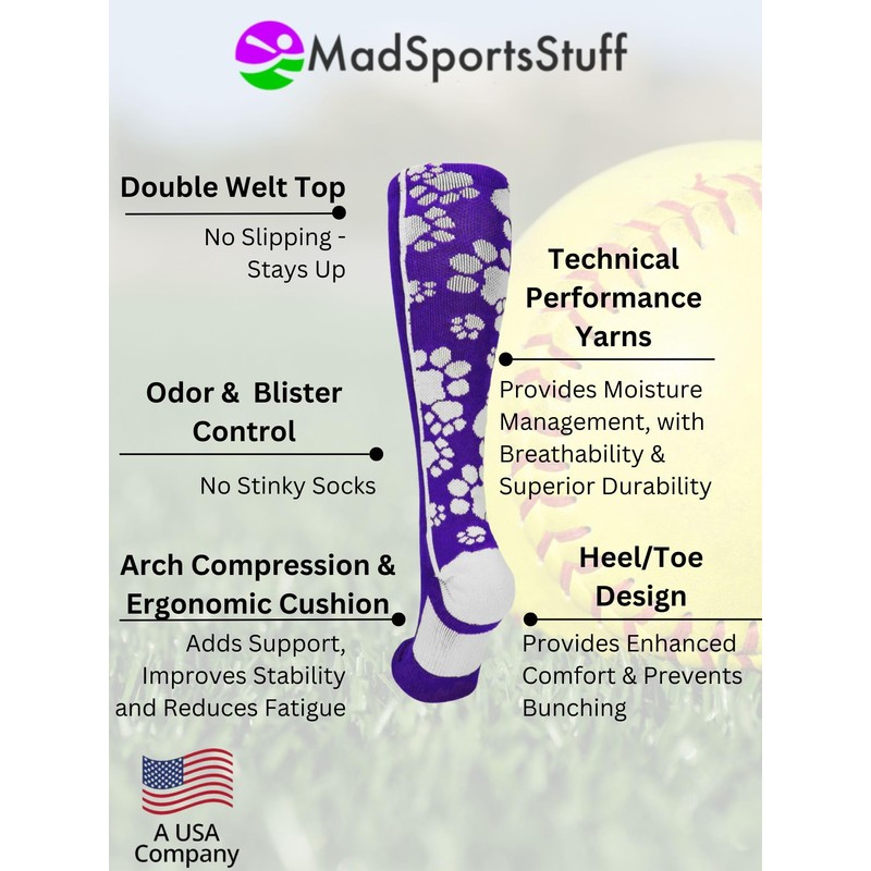 MadSportsStuff Crazy Paw Socks, Over the Calf. High performance athletic paw socks for all team sports and elite athletes. For boys or girls, teams and gifts. Ideal for softball, baseball, lacrosse, basketball, field hockey, volleyball, wrestling, soccer, football, cheer, kickball and more!