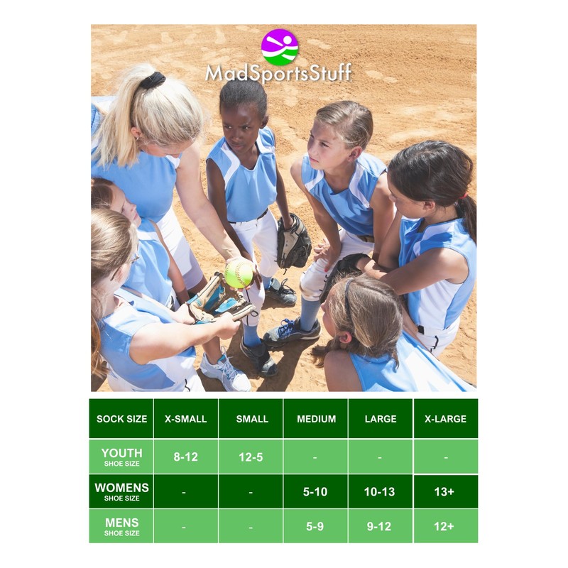 • ACCURATE SIZING: MadSportsStuff Sock Size: Small - Youth Shoe Size 12-5, Medium - Womens Shoe Size 5-10 Mens Shoe Size 5-9, Large - Womens Shoe Size 10-13 Mens Shoe Size 9-12, X-Large Womens Shoe Size 13+ Mens Shoe Size 12+