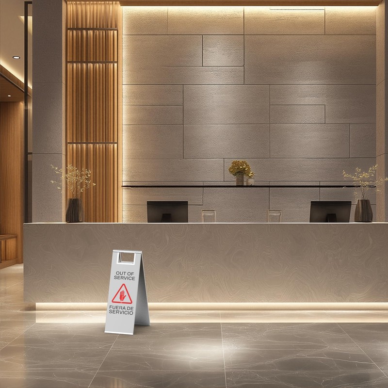 • Double-Sided Bilingual Warning – Boosts Safety Awareness Features clear “Out of Service” and “FUERA DE SERVICIO” text on both sides, along with a universal falling icon. Provides instant visual alerts to help prevent slip-and-fall incidents in multilingual environments