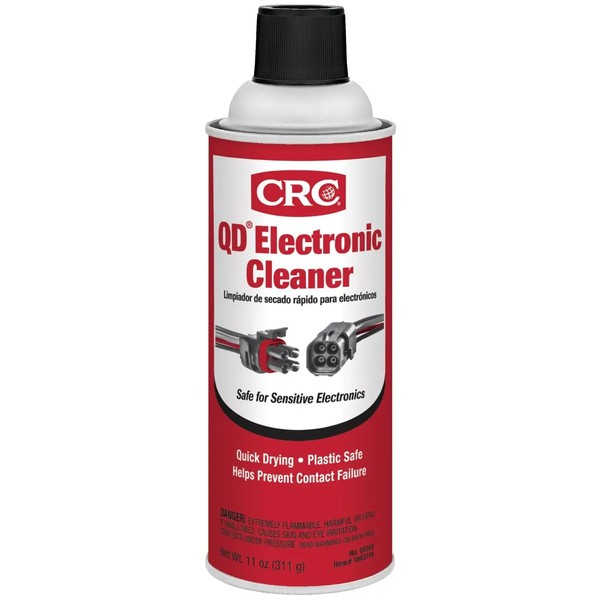 A petroleum distillate / alcohol based precision cleaner designed as an alternative to CFC based cleaners.Clean those sockets, plugs, relay switches and more with this CRC Quick Dry Electronic Dry Electronic Cleaner (11 wt oz). It is the ideal cleanser for connectors and sensitive electronic equipment. The CRC quick-dry electronic cleaner is formulated to protect your equipment and help prevent contact failure. It is plastic safe and does not leave a residue. It dries quickly so there is no waiting to move on to the next job.CRC QD Electronic Cleaner, 11 wt oz: Cleans contacts, connectors and sensitive electronic equipment Circuit breakers, circuits, coin mechanisms, computer components, contacts and electronics Fiberglass, flux removal, sockets and lighting Plastics, nylon, plugs and relay switches PVC, PTFE, tape heads and terminals CRC QD electronic cleaner is a convenient quick-cleaning option for mechanics and maintenance professionals