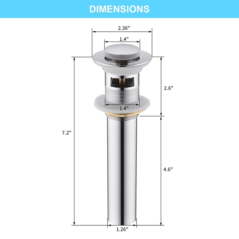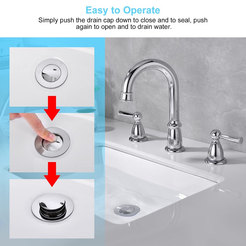 • 【Easy Installation 】 This chrome sink drain is suitable for the hole size of 1 3/5". Anyone can install a pop up drain due to its simple construction,no tools required, it only takes you a few minutes to finish the whole installation. If you are not satisfied with our sink stopper , return it at any time. Any questions , please don't hesitate contact with us.