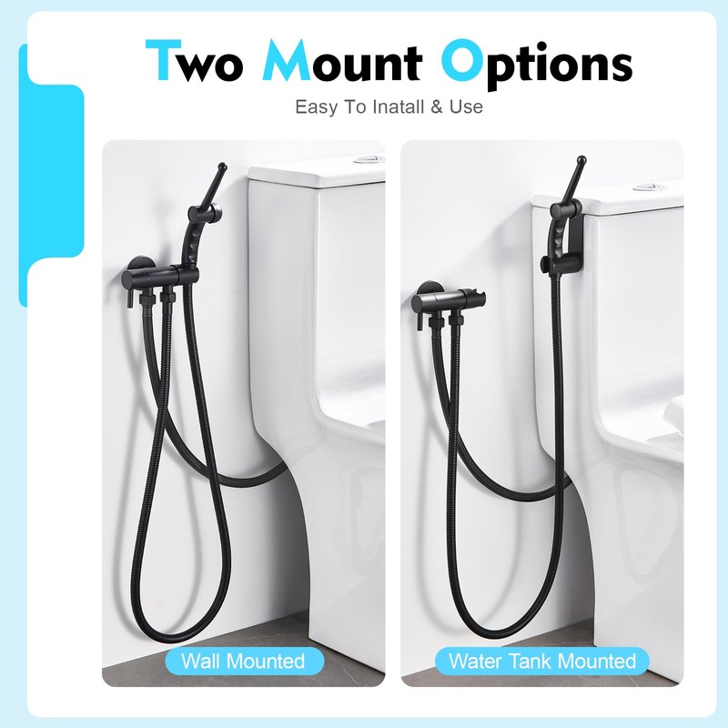 - NSF Plumbing Code Certified:Our bidet sprayer can fit most toilet, no plumber required,saving space and no need to drill hole. The adjustable jet bidet sprayer comes with clear installation instructions . Two installation methods for toilet water tank or wall mounted. it also can be installed in the bathroom, kitchen or garden