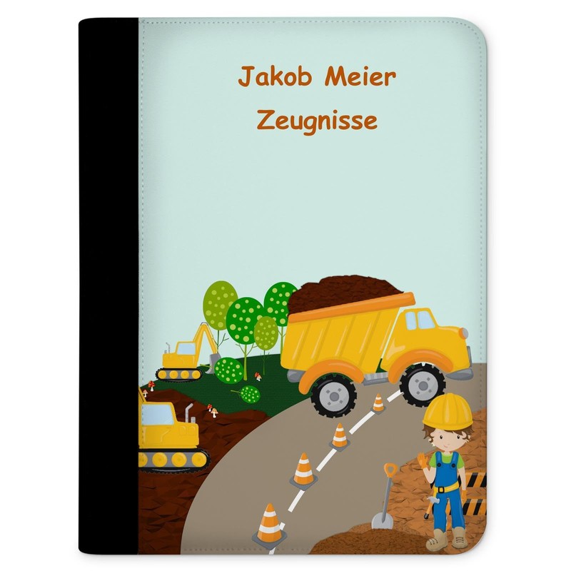 CreaDesign, Children's Certificate Folder Personalised with Name, Certificate Folder Construction Site, DIN A4, 26.7 x 32.7 x 1 cm, Black Spine