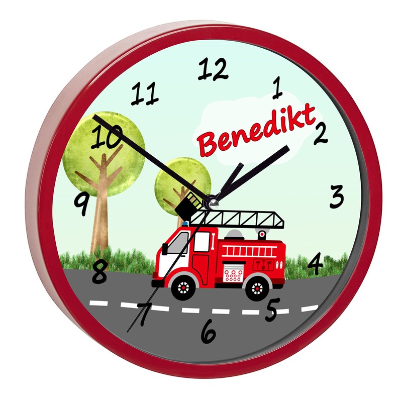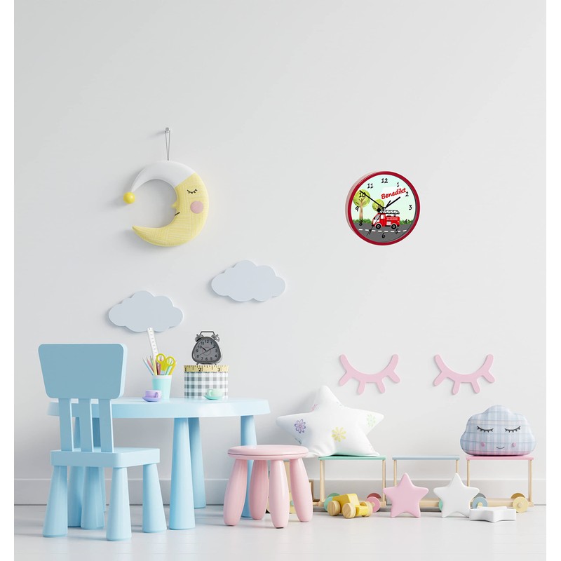 CreaDesign, WU-02-1009 Fire Brigade Wall Clock for Children's Room Personalised with Name Red Frame Diameter 19.5 cm