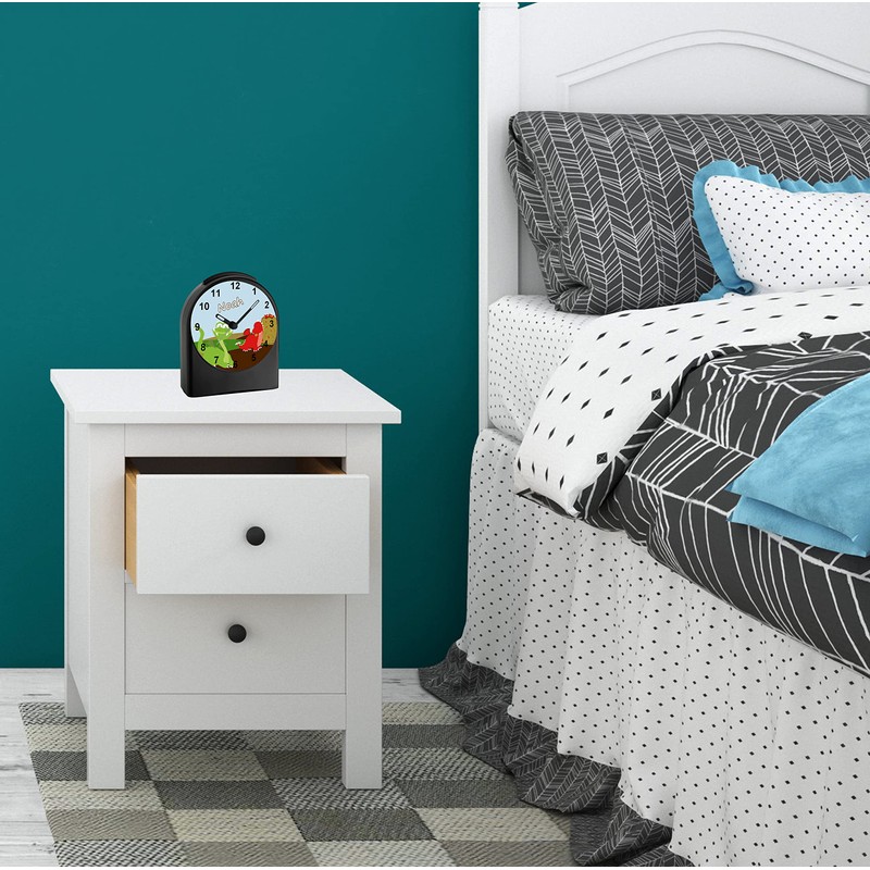 CreaDesign, WU-50-1093, Drache, analog Kinderwecker schwarz, Funkwecker ohne Ticken, mit Licht, personalisiert mit Namen, 9,6 x 5,5 x 11,9 cm, 104 g