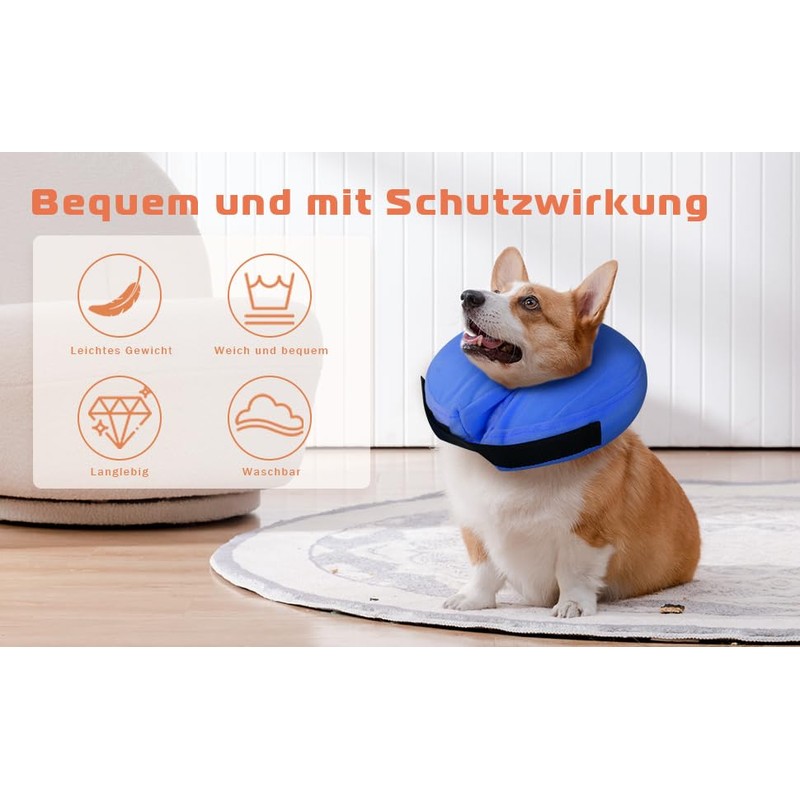Creaher Inflatable Collar for Dogs Cats, Inflatable Dog Collar for Recovery After Surgery or Wounds, Pets Adjustable Protective Collar (M+)