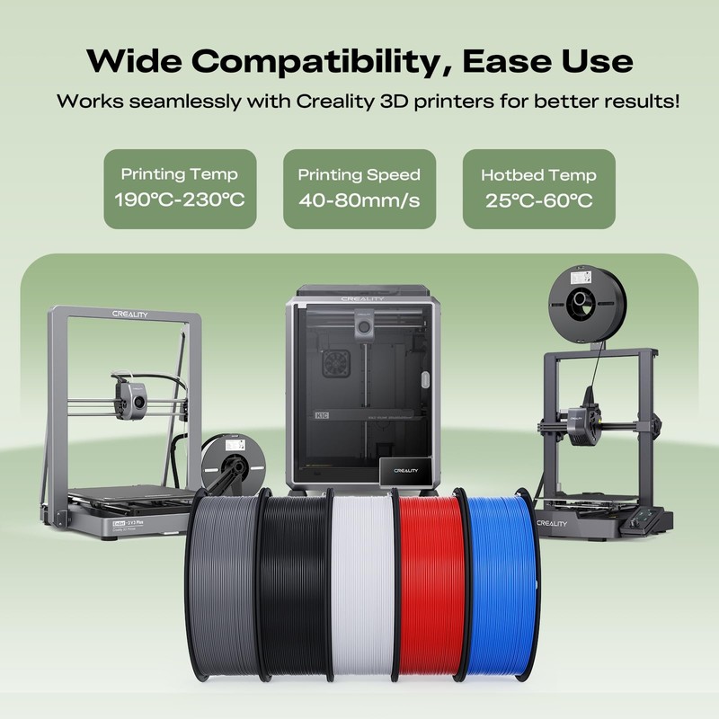 - Premium PLA Material: High Print quality PLA with low melting point, easy to print, minimal shrinkage, and no odor