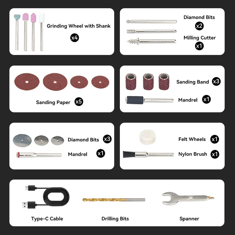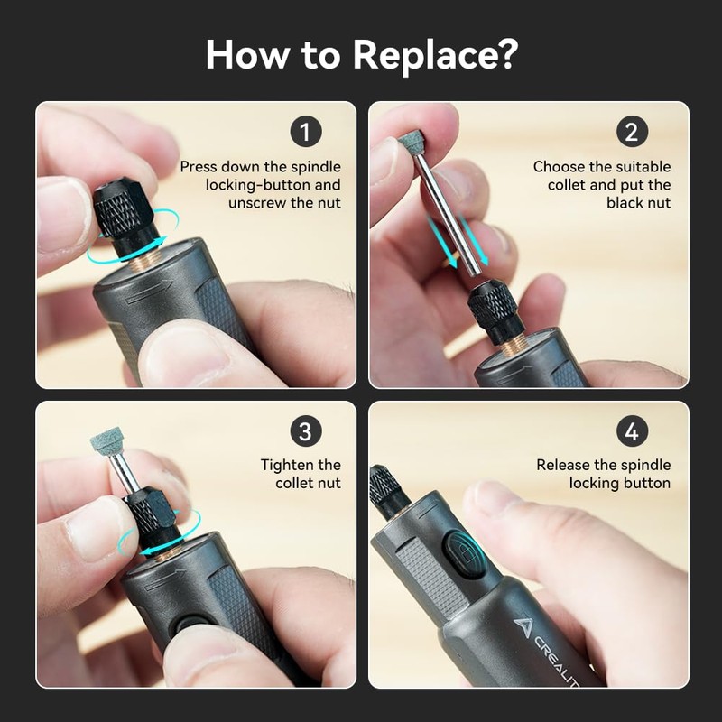 - 【Creality Multi-Purpose Cordless Rotary Tool Kit】Effortlessly tackle grinding, polishing, drilling, and multi-material cutting for flawless 3D print post-processing and DIY projects.