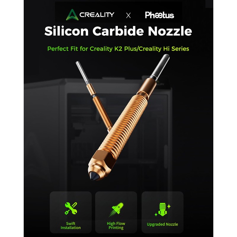 - 【Quick-Swap Integrated Design】: Specially designed for Creality 3D printer K2 Plus Combo and Creality Hi Combo; Creality 0.6mm K2 Plus Phaetus Silicon Carbide nozzle adopts an all-metal integrated design, facilitating quick disassembly and convenient replacement