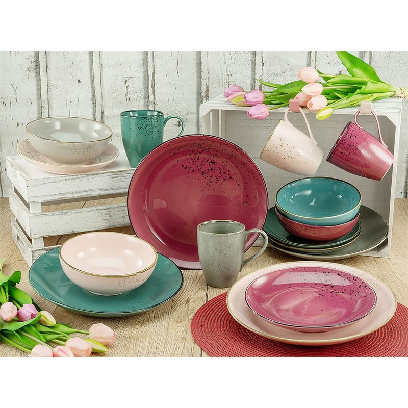 • CreaTable NATURE COLLECTION Multi-Purpose Bowl 16.5 cm ROSE. Natural colours combined with reactive glaze on the edge (antique finish) and speckles. On trend: artisanal look (pottery), vintage, nature. Dishwasher and microwave safe. Material: stoneware Color:Rose Package includes: 1 x multi-purpose bowl 16.5 cm ROSE.