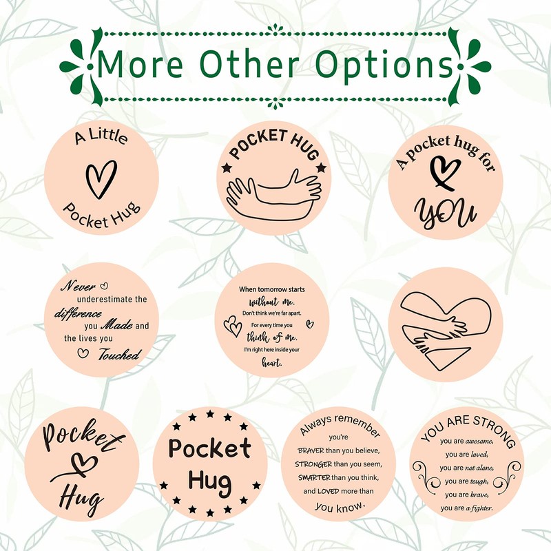 • [[POCKET HUG TOKEN]: Double-sided engraved pocket hug - Front: "A pocket hug for you"; Back: Holding the pattern of love with both hands. Even if you're not around, have this pocket hug token to let them keep a positive and optimistic attitude.