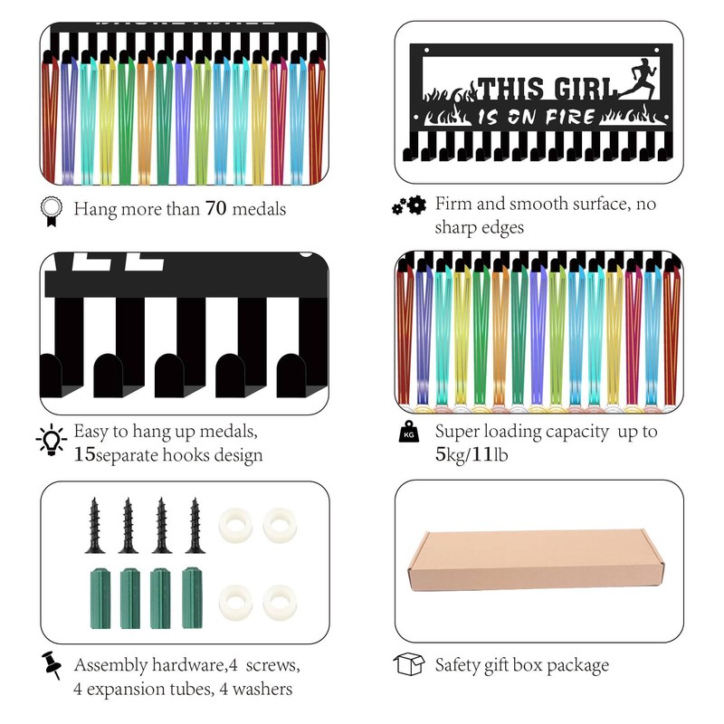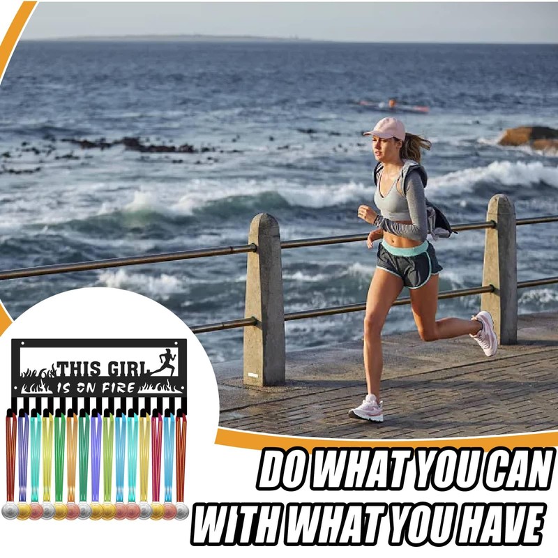 CREATCABIN Medal Holder Running Medal Hanger Display with Trophy Shelf Wall Mount Sports Medal Rack Organizer for Hanging Over 70 Medals Marathon Runner Badges 11.8 x 5.1Inch-This Girl is On Fire