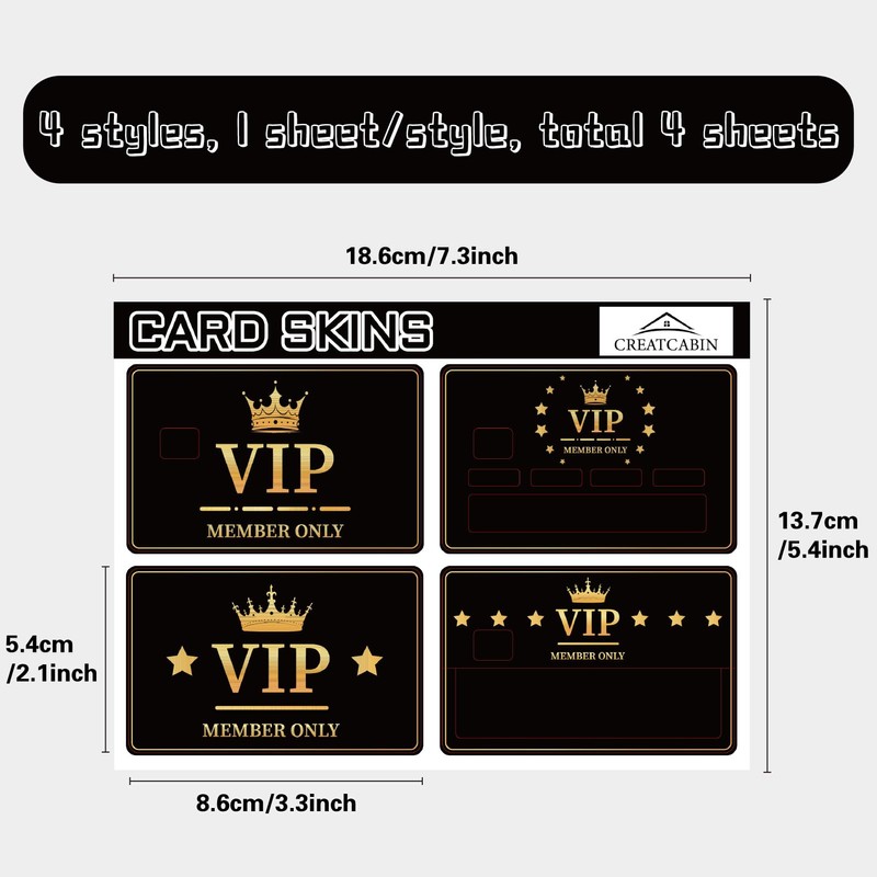 CREATCABIN Pack of 4 Credit Card Skin Debit Cards Stickers Only for Members VIP Credit Cards Decor Waterproof Bank Card Protective RFID Blocking Sticker for Credit Card Holders 5.4 x 8.6 cm