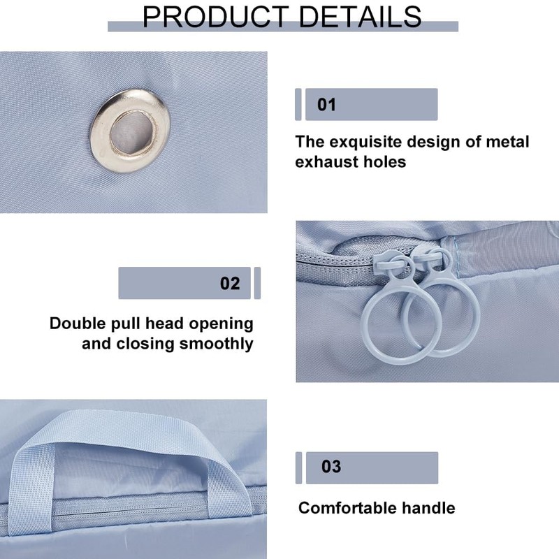 - Wide Applications: Compression storage bags are suitable for storing not only down jackets but also quilts, comforters, and bed sheets during off-seasons to keep them clean and dust-free. They are also great for packing clothes when traveling, moving, or organizing your wardrobe. If there is a collection of bulky sweaters that take up a lot of space, these bags offer a practical solution to declutter and organize your storage areas