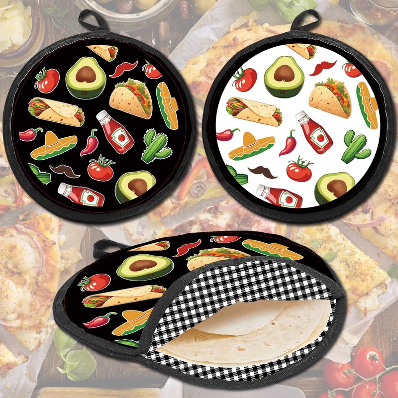 - All Typles of Tortillas: This fabric tortilla warmer is suitable for many types of tortillas, pita bread, quesadillas, waffles, pancakes, scones, pizza, cookies, burritos, bagels cakes etc. Suitable décor for taco Tuesday, mexican feasts, kitchen, hotel, snack bar, outdoor bbqs, picnics, beach & backyard parties, formal and casual events