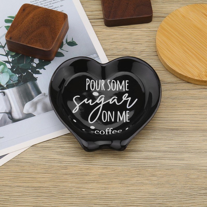 -[Charming Black Heart Design] Adorn your coffee table, stand, or station with this black heart-shaped ceramic spoon rest—a delightful gift for tea and coffee enthusiasts.