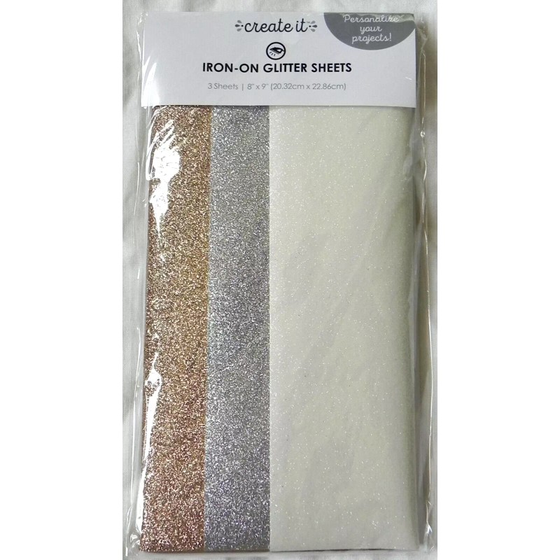 Create It 4 Packs "Iron On Glitter Sheets" by Create It, Gold Silver White 8"x9" Holiday