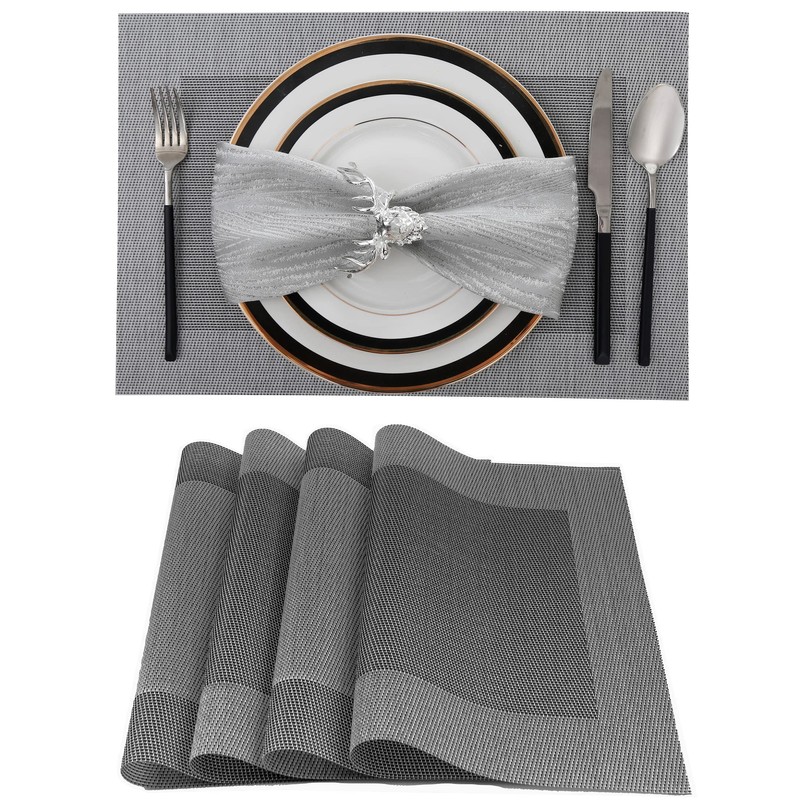 Createshao PVC Silver Rectangular Teslin Placemat Frame Placemats Table Mat Simple Tablemats(B- Silver,4 Pcs)