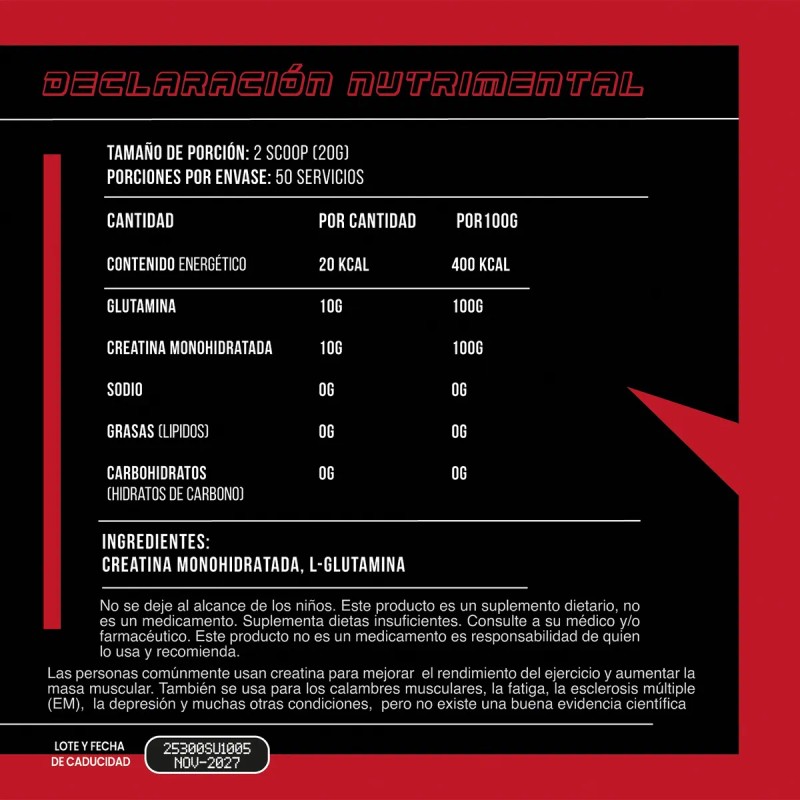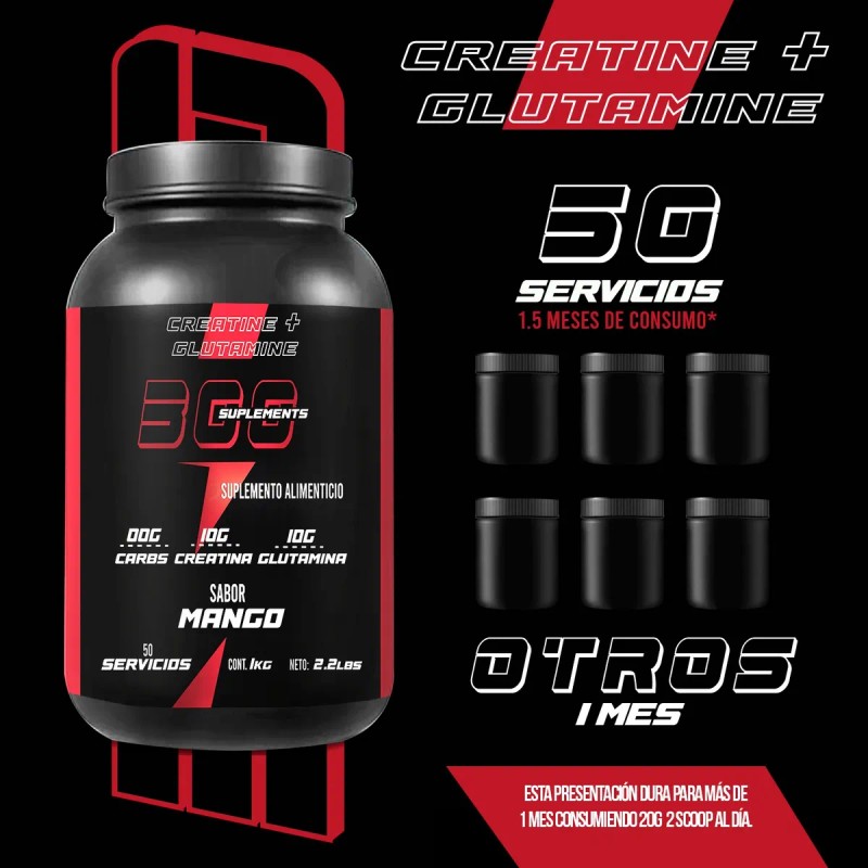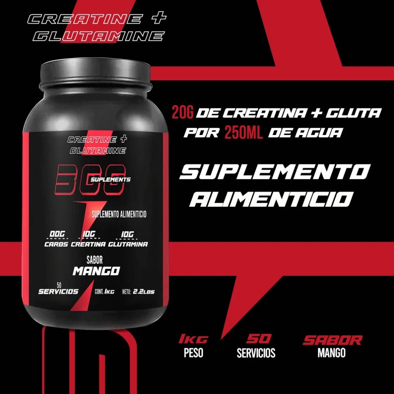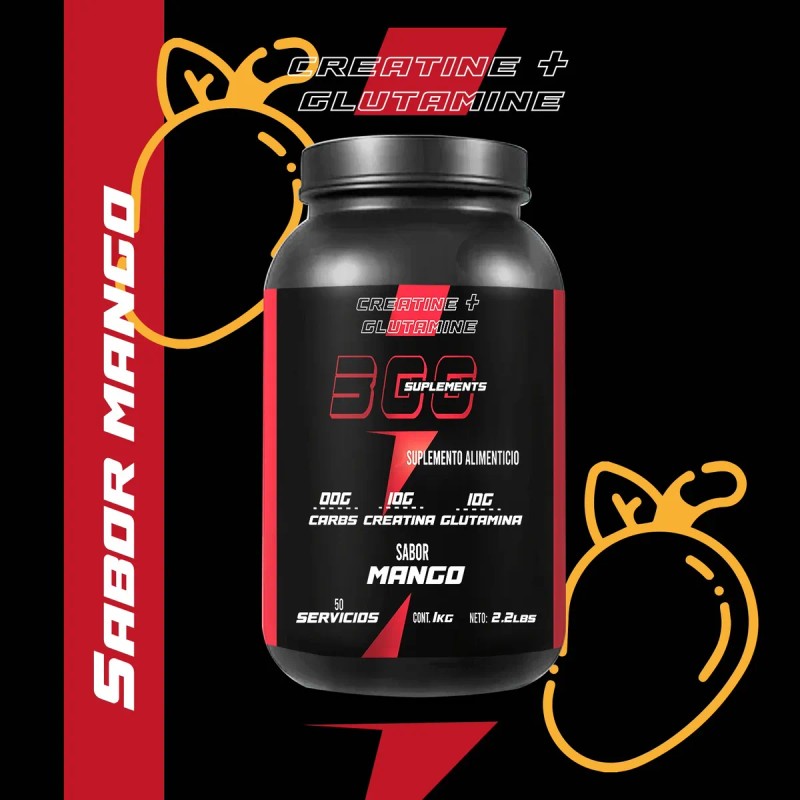 Creatina + Glutamina 300 Suplements 1kg 50 Servicios Mango