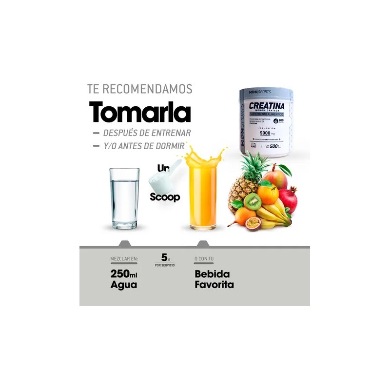 Creatina Monohidratada 100% Pura 500g MDN Sports 100 servicios Sin rellenos, Sin Sabor.