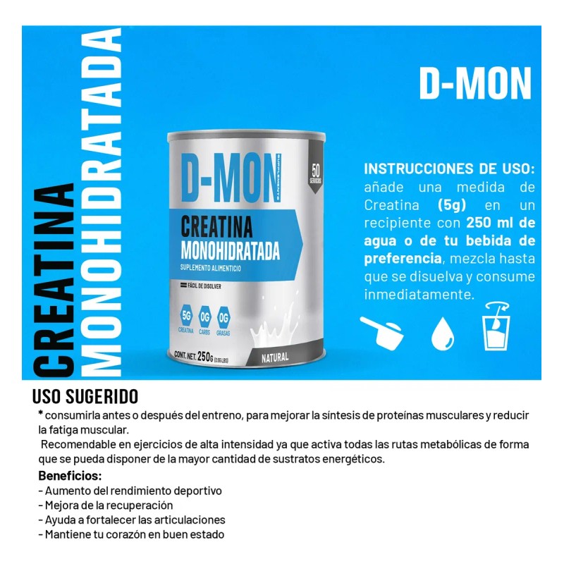 Creatina Monohidratada 250g D-mon Varios Sabores Natural