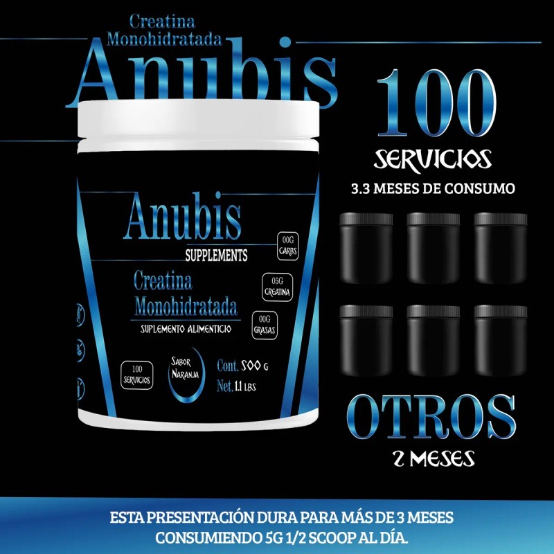 Creatina Monohidratada 500gm Anubis En Polvo Varios Sabores Naranja