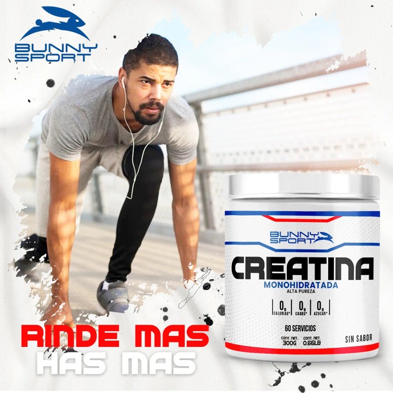 Creatina Monohidratada En Polvo Bunny 300g 60 Servicios Sin Sabor