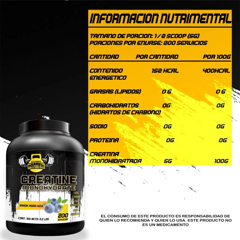 Creatina Monohidratada Guns 1k 200 Varios Sabores Mora Azul - Producto Original de Alta Calidad, Entrega Rápida y Segura, Garantía Incluida