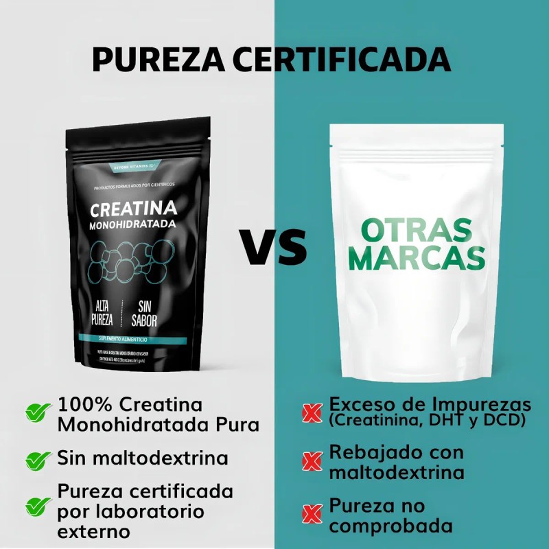 La Creatina Monohidratada Beyond Vitamins es un suplemento alimenticio que contiene Creatina Monohidratada Micronizada con certificado de alta pureza realizado por un laboratorio externo en cada lote para garantizar calidad.