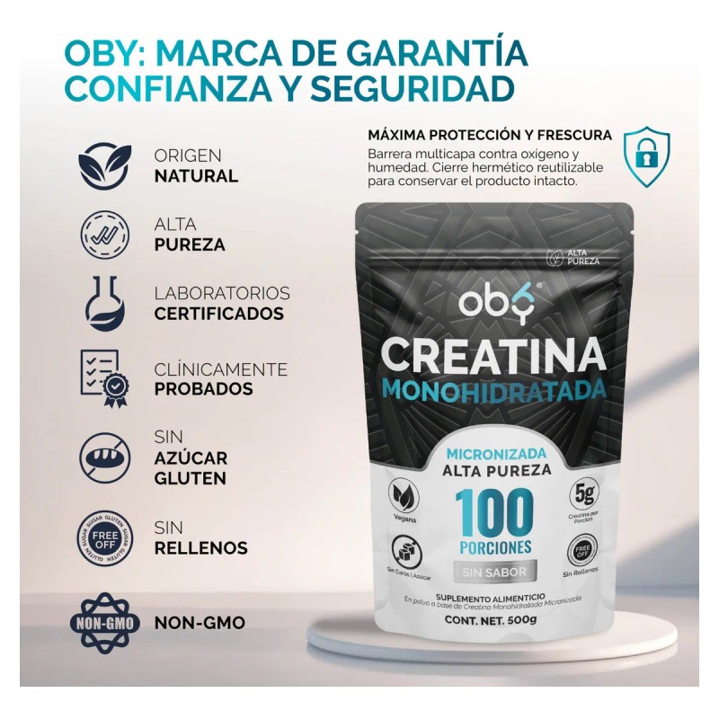 Creatina Monohidratada Micronizada Pura Polvo 500gr Oby Creatine 100 Servicios Sin Sabor Y Alta Absorcin Creatina Mujer Y Hombre Pre Entreno Y Alta