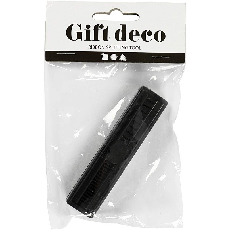 - Tool for cutting tape into fine strips This ribbon splitter can split gift ribbon into two widths
