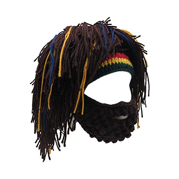 Creative Barbarian Knit Beard Hat Funny Knit Hat Wig Beanie Hat Beard Facemask Coffee