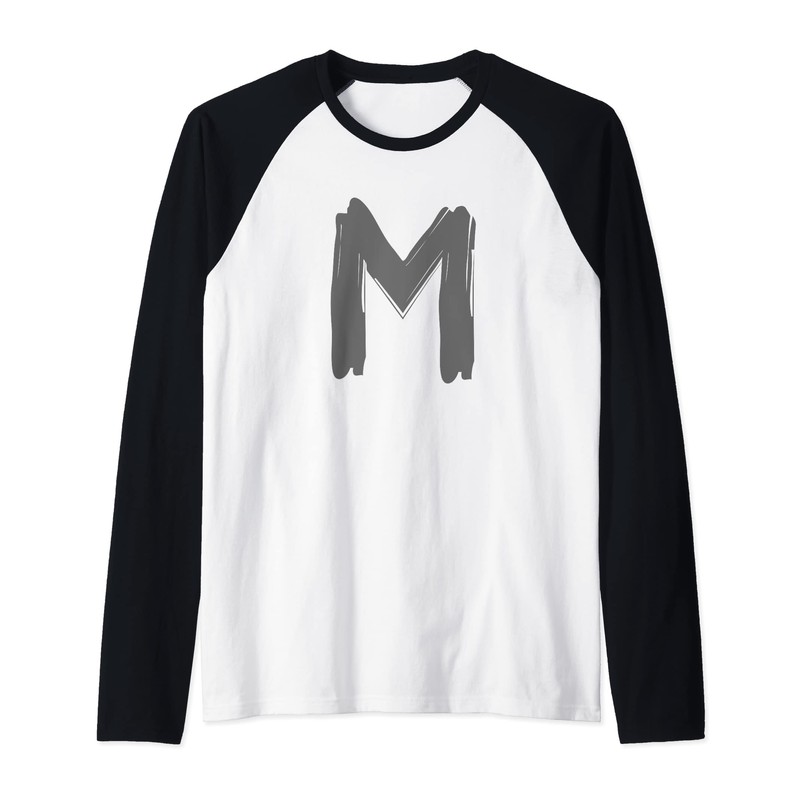 Creative Bold Dark Grey Letter M - Alphabet - Marker Design Raglan Baseball Tee