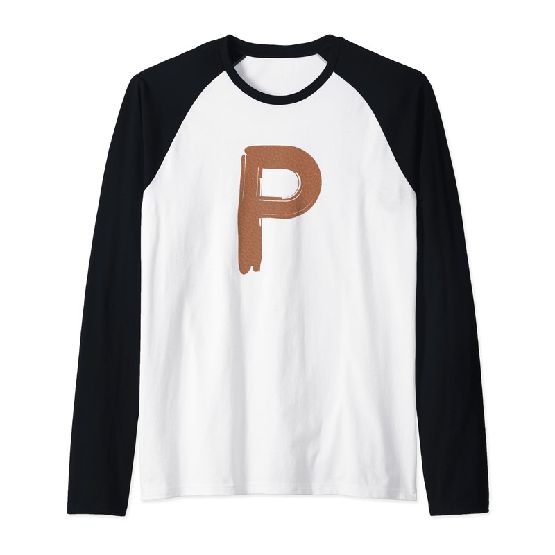 Creative Bold Leather Letter P - Design - Alphabet - Marker Raglan Baseball Tee
