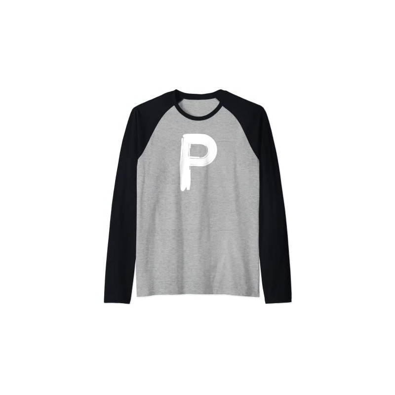 Creative Bold White Letter P - Design - Alphabet - Marker Raglan Baseball Tee