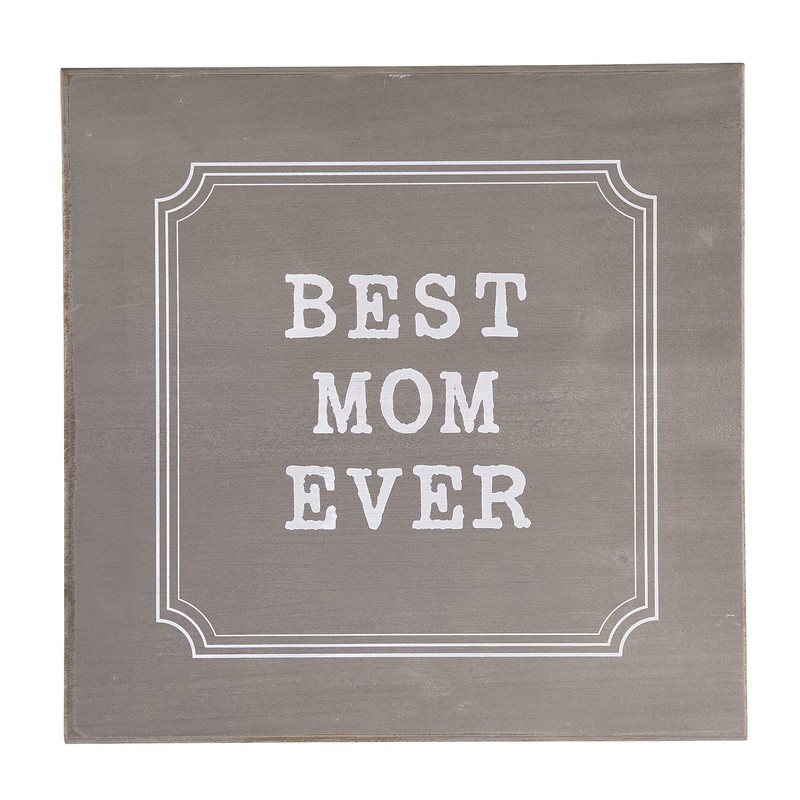 - FARMHOUSE STYLE: Whitewashed legs and dark stained top; white lettering reads, "Best Mom Ever"