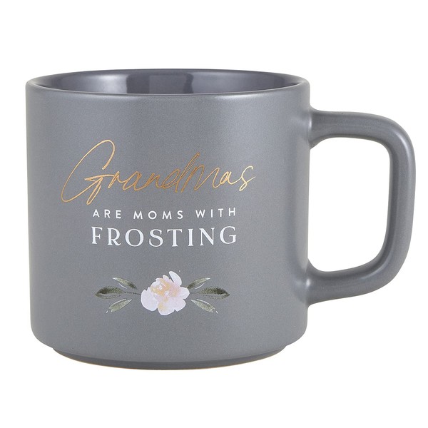 - GREY WITH PEACH FLORAL DESIGN: White and gold foil print; reads "Grandmas are moms with frosting"
