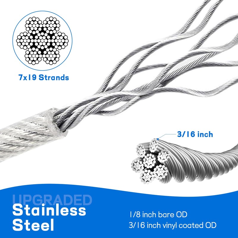 - ✨ [Package content] 2* 304 vinyl coated stainless steel cables 57.4 inches long ,2*304 stainless steel EZ spring clips.