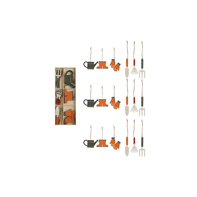 Creative Co-Op 1' H - 4' H MDF Laser Cut Garden Tool Ornaments, Multi Color, Boxed Set of 18