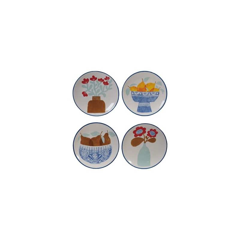 Creative Co-Op 12-Piece Stoneware Plate with Fruit/Flower Image, Multicolor